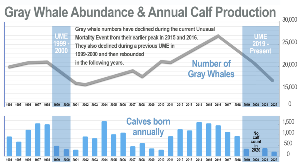 Gray whales that migrate along the West Coast of North America continued to decline in number over the last two years, according to a new NOAA Fisheries assessment. The population is now down 38 percent from its peak in 2015 and 2016, as researchers probe the underlying reasons.
